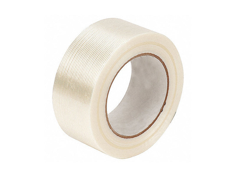 Cinta adhesiva reforzada con fibra de vidrio unidireccional adecuada para reforzar, flejar, paletizar y embalar.