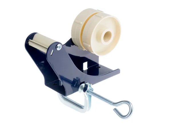 Precintadora de fijación con abrazadera metálica diseñada para cintas adhesivas de 25 mm o 50 mm de ancho.